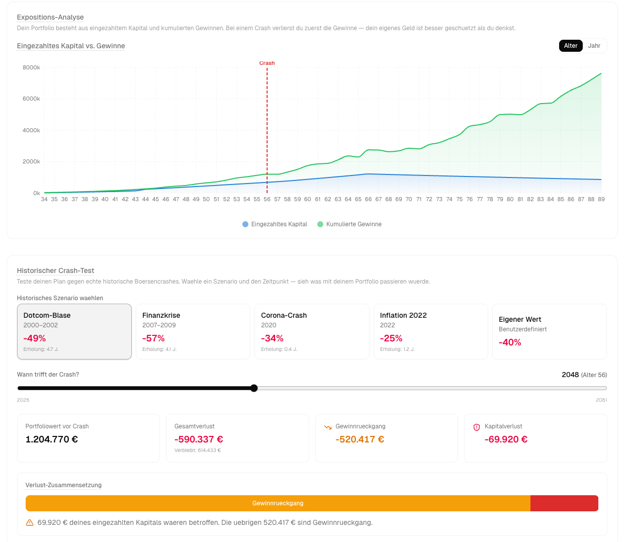 Die meisten Menschen raten bei ihrer Altersvorsorge. Du nicht. Simuliere dein ganzes Leben — und triff Entscheidungen, die auf Daten basieren, nicht auf Hoffnung.